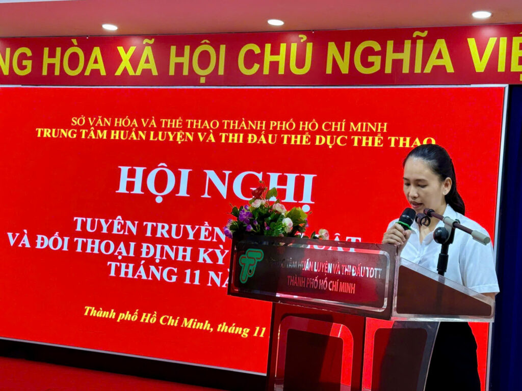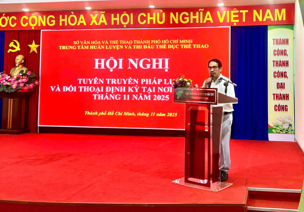 Sáng ngày 03/11/2025, tại Hội trường Trung tâm Huấn luyện và Thi đấu Thể dục Thể thao Thành phố Hồ Chí Minh đã diễn ra Lễ chào cờ và sinh hoạt đầu tháng 11/2025 với sự tham dự của Ban Giám đốc Trung tâm, lãnh đạo các phòng, cùng toàn thể viên chức và người lao động đang công tác tại đơn vị.