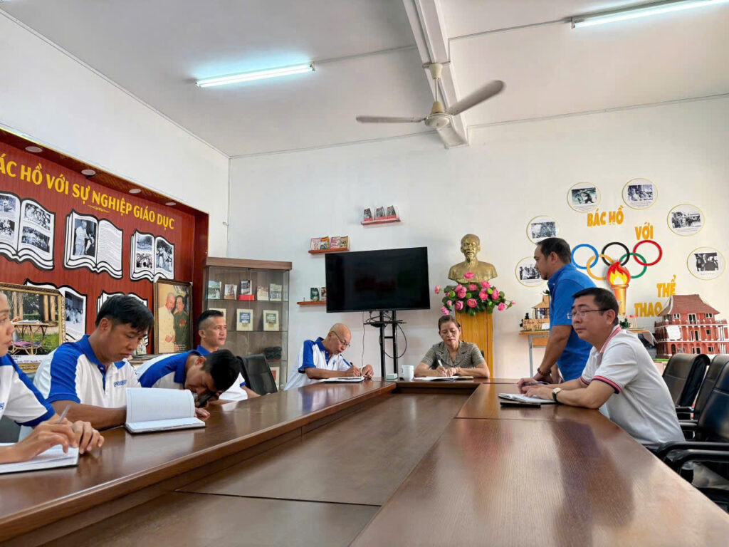 Buổi làm việc do Bà Nguyễn Thị Yến Phương – Hiệu trưởng nhà trường chủ trì. Tham dự buổi họp có đại diện Trung tâm Huấn luyện và Thi đấu Thể dục Thể thao Thành phố Hồ Chí Minh gồm Ông Giáp Trung Thang – Phó Trưởng phòng Nghiệp vụ, Ông Lê Hải Đăng – Phó Trưởng phòng Nghiệp vụ, cùng các chuyên viên Phòng Nghiệp vụ và giảng viên nhà trường.