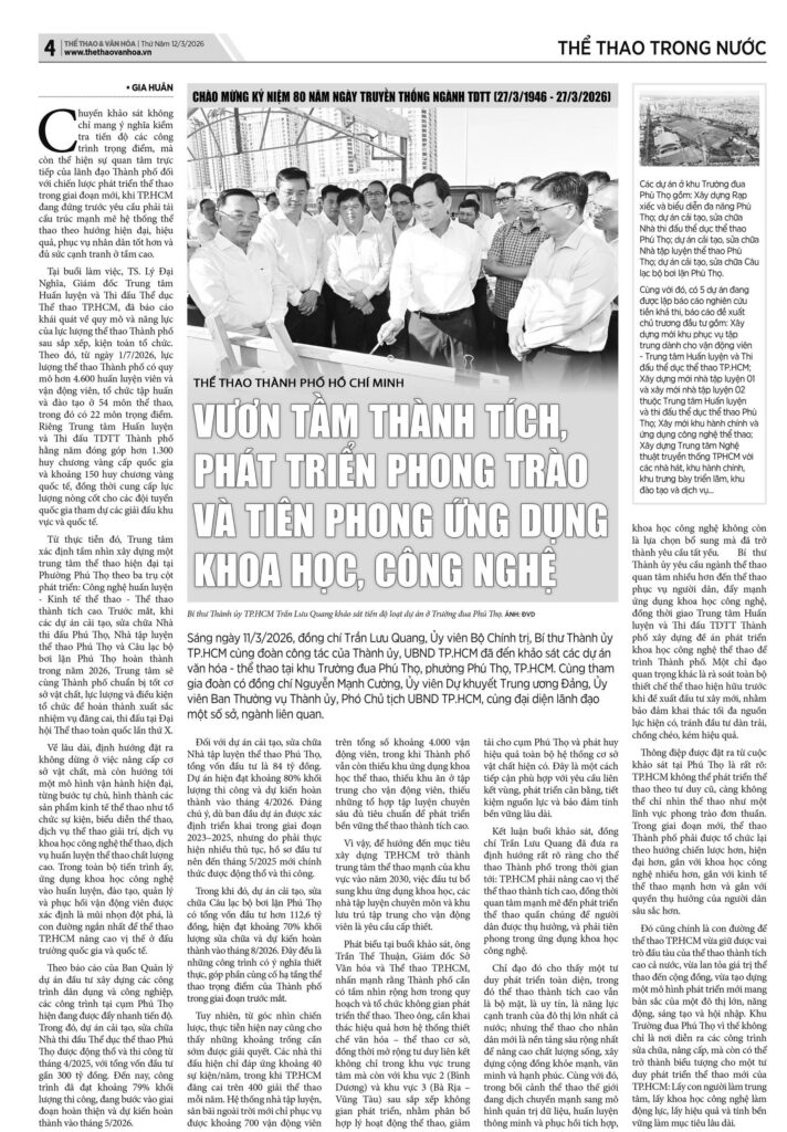 Trung tâm Huấn luyện và Thi đấu Thể dục thể thao Thành phố Hồ Chí Minh tiếp đón đồng chí Uỷ viên Bộ Chính trị, Bí thư Thành Ủy TP.HCM Trần Lưu Quang đến khảo sát tại đơn vị.